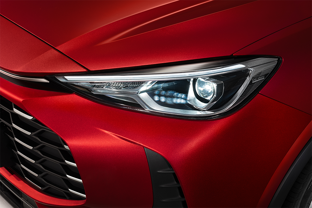 Reliés par une bande noire laquée, les feux avants s'inspirent du regard du léopard pour un aspect dynamique et technologique.
